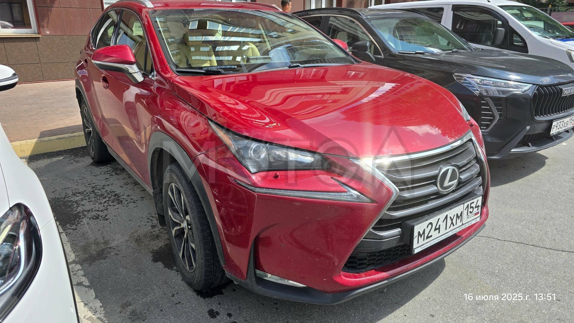 Марка: Lexus Модель: NX Год выпуска транспорта: 2015. Мощность, л.с.(по ПТС): 238. Привод: Полный. Коробка передач: Автоматическая. Идентификационный номер (VIN): JTJBARBZ902051438. Общее состояние хорошее, салон кожаный, осветительные приборы как внутри так снаружи в рабочем состоянии, на лобовом стекле трещина, автомобиль на литых дисках, пробег равен 161 030 км, электроприборы в рабочем состоянии, имеется царапина на задней правой двери.