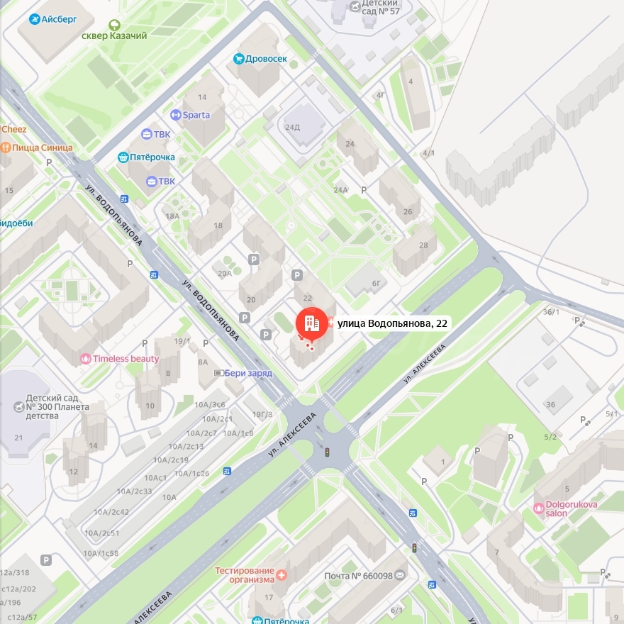 Адрес: Красноярский край, г. Красноярск, ул. Водопьянова, д. 22, кв. 39